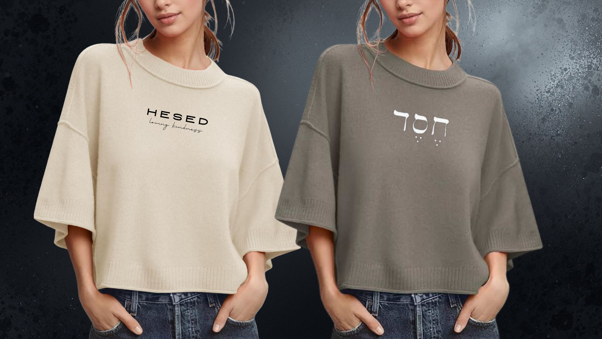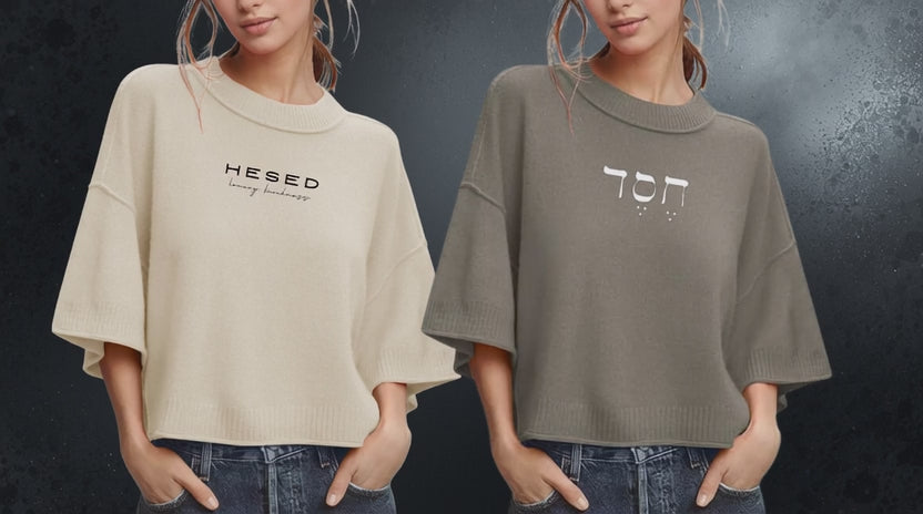 HESED Ribbed Short Sleeve Sweater — a lightweight, everyday essential featuring Hesed in both English and Hebrew. The Hebrew symbol (חֶסֶד) represents a deep, active love — kindness that moves, serves, and remains faithful. Softly structured with a relaxed fit and subtle ribbing, this piece blends meaning with effortless style in warm coffee and cream tones made for layering or wearing on their own.